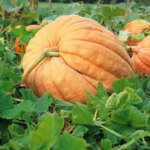 Pumpkin is a hot weather crop. They need full sun and deep, rich, well drained, organic soil with a pH of 5.5 to 6.5. Before planting, work in lots of compost. Sow seed directly outdoors from late May through early June 2.5 cm deep in hills 2.4 m apart with 4-6 seeds per hill. After germination, thin to 3 plants per hill. Seed can be started indoors 3 weeks before the plant out date. Pumpkins do not transplant well–use paper or fibre pots that can be set directly in the soil. For competition sized pumpkins, allow only two pumpkins per plant to mature. Protect mature pumpkins from frost and cold temperatures. Germination occurs in 7-10 days.