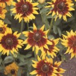Another uniquely patterned Rudbeckia showing bright red and yellow bi-coloured flowers with pointed petals. Matures to 45 cm height. Avoid high fertility and irrigate only when absolutely necessary. Water soil below foliage if possible. Note: This Rudbeckia is best grown as an annual.