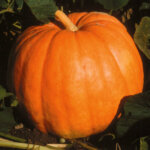 Look for help when it’s time to bring these beauties in from the garden. “Big Max” lives up to his name by producing large pumpkins, reliably in the 20 kg range. When growing conditions are ideal, this pumpkin will produce fruit that weigh more than 45 kg measuring in at 175 cm in diameter. Fruit tends to have a “flattened” appearance. The skin is pinkish orange and very thick. ‘Big Max’ is usually listed as C. maxima rather than C. pepo. Approximately 120 days to harvest.