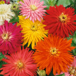 An extra large strain of cactus zinnia with flowers up to 15 cm across. The stocky, upright plants first start to bloom when roughly 37.5 cm tall. Plants can grow up to 90 cm in height producing large quantities of flowers on numerous side branches all season long.