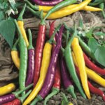 This brightly coloured blend of Golden, Orange, Purple, and Green mildly hot peppers will make your dishes an eye-catching, mouth-watering treat. Good for pickling too! Peppers average 15-20 cm in length by 1.25 cm wide. Matures in 70 days.