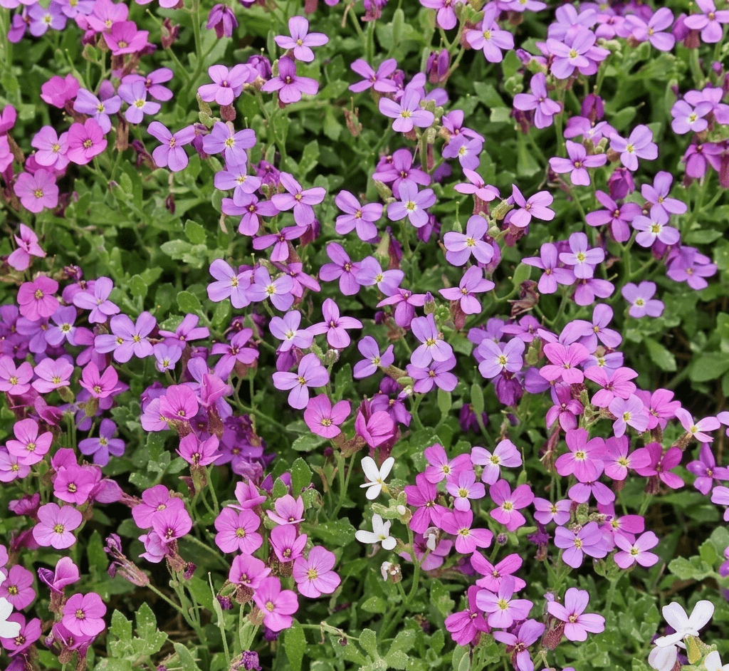 False Rock Cress (Aubretia) is a classic perennial favourite for creating a cascading “waterfall” of flowers. This vigorous groundcover forms a dense, evergreen mat of foliage that becomes completely smothered in brilliant shades of pink, crimson, and blue throughout the spring. Reaching only 15 cm in height, it is the definitive choice for rock gardens, stone crevices, or for tumbling gracefully over retaining walls and garden edges.