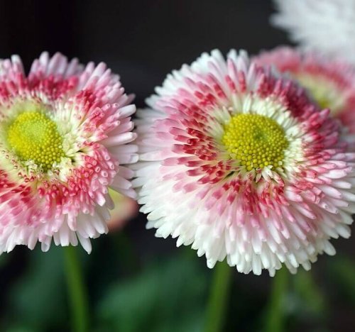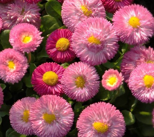 Giant Double Mixed English Daisy Bell Seeds 6450. Open Pollinated. Biennial.