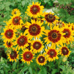 Large 12-18 cm wide flowers in yellow, mahogany and bi-colours all with black-brown centres occur June through August. A type of Black-Eyed Susan, also known as Hairy Coneflower. Perfect for borders or for massing in large sunny gardens. Garden height averages 90 cm. Best grown where there is good air circulation to prevent mildew and other foliar disease. Water only when stressed by drought and then only in the morning so that foliage dries. Hardy to Zone 4 with protection.