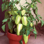 Start indoors mid February to late March. Use a soil-less growing mix. Sow seed 6 mm deep. Maintaining the growing medium at a temperature of 21° C will enhance germination. Grow the seedlings under bright light and temperatures of 16-21° C to produce strong, stocky plants. Transplant after hardening off, in late May to early June. Full sun and a well-drained soil is best. Space the plants 30 cm apart in rows spaced 60 cm apart. Control weeds and avoid high nitrogen fertilizers. Try harvesting the peppers at different maturities to experience a wider range of flavours and textures. Staking is recommended with most varieties. Note: Estimated days to maturity are based on counting the days after transplanting. Germination occurs in 10-20 days.