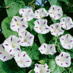 Soak seed overnight before sowing directly in the garden in mid to late May, 6 mm deep and 7.5 cm apart. Thin to 15 cm apart when the vines are 7.5 cm tall. Morning Glories don’t transplant well so there is no real advantage to starting seed earlier indoors. Vines may grow up to 4 m long. Prefers moist, well drained soil. In naturally rich soil, fertilize if you notice a lack of vigour or poor foliage quality. In poor soils, vines benefit from frequent, dilute fertilizer applications. Avoid high nitrogen fertilizers as this leads to rampant vegetative growth at the expense of flowering. Germination occurs in approximately 2 weeks.
