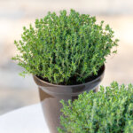 Sow seed outdoors in mid to late May, then every two weeks through June, or start them inside and transplant after the danger of frost has passed. Thyme is a low maintenance plant & prolific once established– all you really need to do is provide water when necessary. Thrives in bright, hot sunny gardens. Lightly feed with a general-purpose fertilizer as too much can adversely affect the production of the essential oils responsible for flavour and aroma. Thyme is primary grown for leaves. Harvest as sprigs — leaves and branches together. Germination takes 20-30 days.