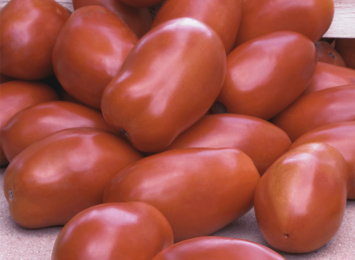 This classic Italian plum tomato is ideal for making sauce and canning. Large bright red fruits with few seeds and slightly flattened sides average 150 g in weight. The skin is quite crack resistant while the flesh is both meaty and mild. Grows 60-80 cm in height. Indeterminate growth pattern (individual fruits ripen successively over many days).