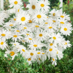 Free flowering plants with large snow white, single flowers with yellow centres. Well drained soil is best. No perennial garden should be without this outstanding plant. Grows 50-70 cm tall. Older references have Shasta Daisy listed as Chrysanthemum X superbum and C. maxima. Recent changes to the nomenclature placed Shasta Daisy into the genus Leucanthemum. Hardy to Zone 3.