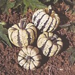 A delightful dumpling shaped, delicate squash. Very sweet and tasty light golden flesh in compact fruits that average 10 cm size and 250 g weight. Just the right size for individual servings. Very productive vine; fruit stores quite well. Fruit benefits from straw mulch between it and the soil.