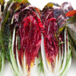 A challenging crop to grow but a visual delight for the eyes and a culinary treat for the taste buds. The top growth of this chicory is similar in shape to Belgian endive. Elongated heads of crisp, green leaves that become deep red and veined with white with the arrival of cooler temperatures later in the season.